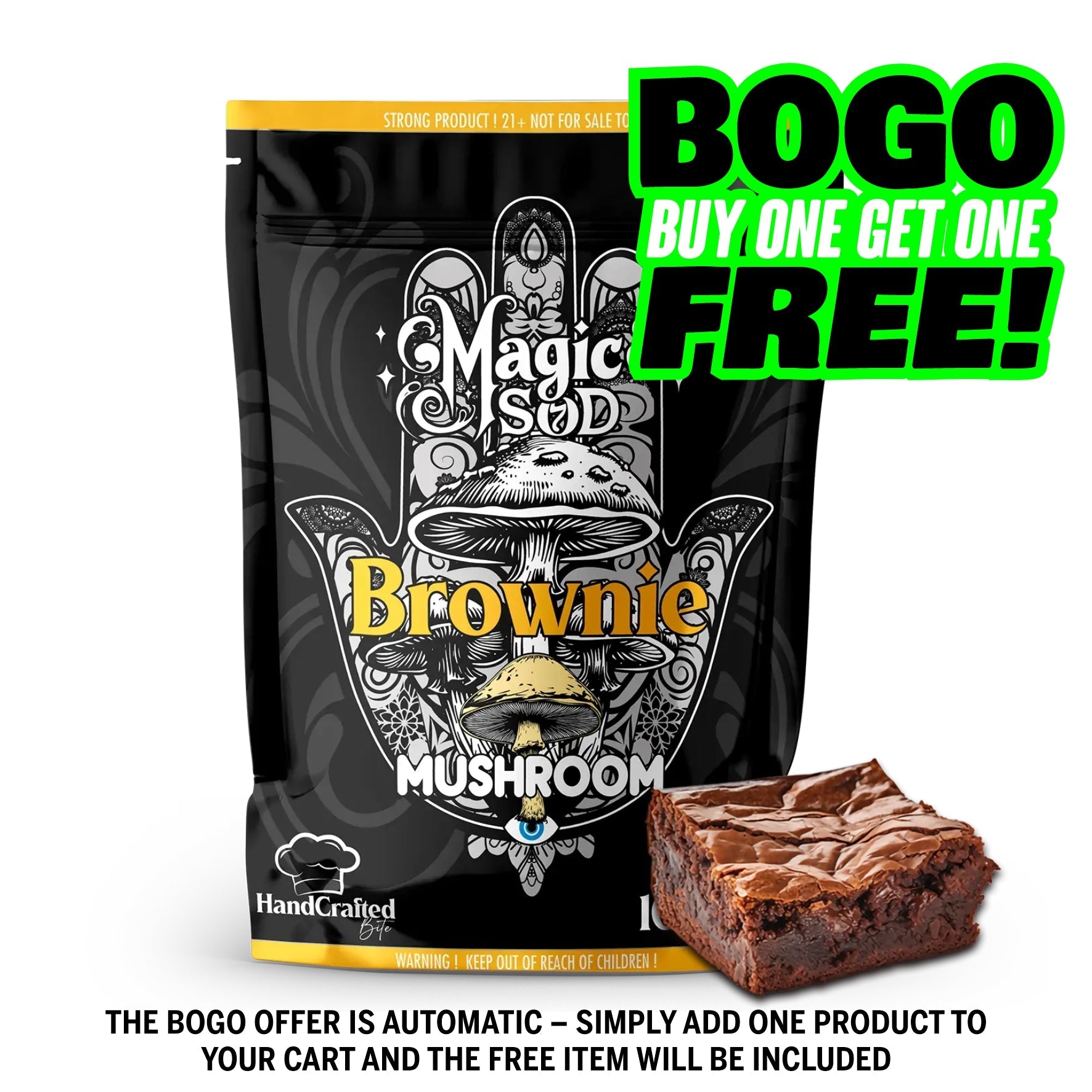 Indulge in the ultimate chocolate experience with our decadent Magic SOD mushroom brownies! Baked with love and the finest ingredients, these brownies are rich with fudge, and bursting with chocolate flavor. At Magic SOD, we bake and handcraft with premium ingredients, these brownies offer a rich and indulgent flavor that will leave you wanting more. Looking for the best brownies online? Our homemade fudge brownies are the top choice for "gourmet brownie delivery," "decadent chocolate treats," and "best fudge brownies." Don’t miss out on the ultimate chocolate dessert everyone’s talking about! Order today and experience brownie bliss delivered straight to your doorstep. Your taste buds will thank you!